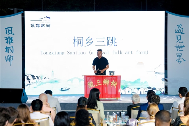 相继登台表演的桐乡花鼓戏《庵堂相会·过桥》、桐乡三跳等桐乡传统民间技艺,则展现了独具魅力的“chinese style”,将非遗传承的精妙与现代都市的活力融为一体。