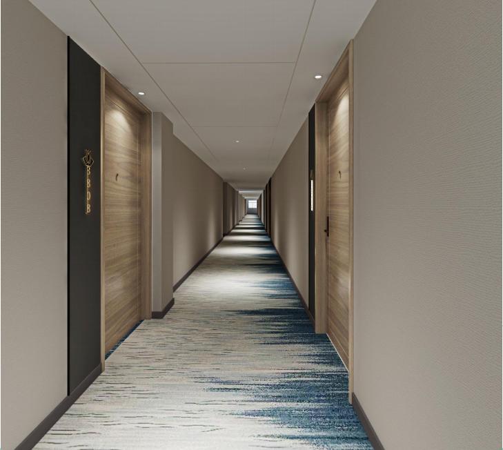 比如酒店走廊用的是浅色地毯,一定程度上能增加走廊亮度,同时,地毯的绒毛也比较长,花纹也简单,既便于客人拉行李,又便于后期运营的维护保养。